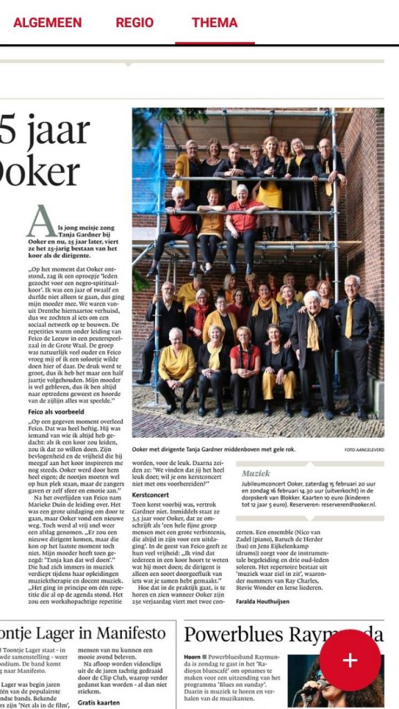 Een interview met Tanja Gardner, dirigente van Ooker nav het komende jubileumconcert